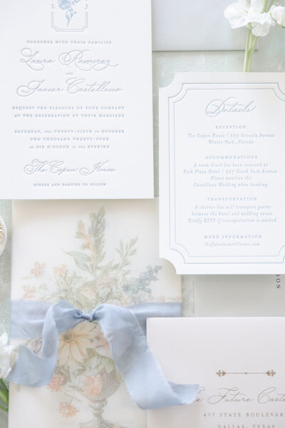 Absolutely! Embellishments like wax seals, venue illustrations, or ribbon can be added for an additional cost. We’ll review all the possibilities during the design phase to make your suite feel uniquely yours.